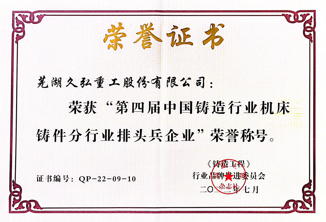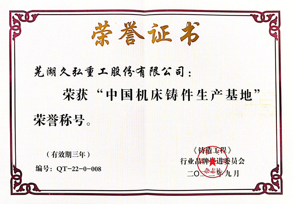 中國(guó)機(jī)床鑄件生產(chǎn)基地證書(shū)