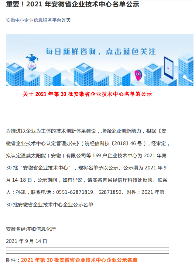 2021年安徽省企業(yè)技術(shù)中心名單公示